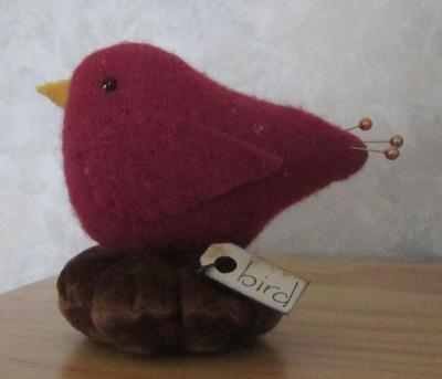 Title (ebay affiliate link): PRIMITIVE RED WOOL BIRD VELVET MAKE DO PIN CUSHION SEWING PFATT
