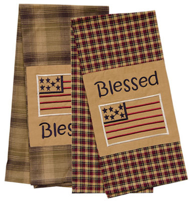 Primitive Country Decorative Patriotic Kitchen Towel Set - Set/2 - Blessed Flag