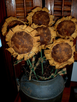 Title (ebay affiliate link): PRIMITIVE DECOR~SET OF SIX SUNFLOWER ORNIES/POKES