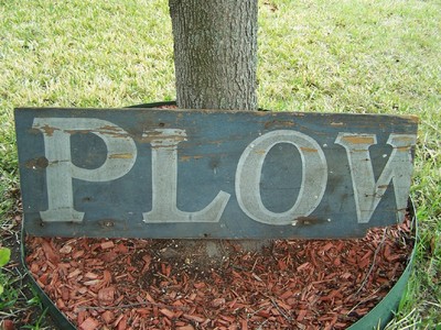 19thC Wooden PLOW Sign old early original paint aafa fragment