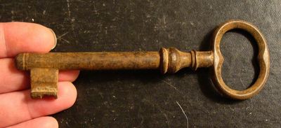 Title (ebay affiliate link): Hand Forged Large 5 5/8" Antique 17th 18th C Primitive Iron Skeleton Lock Key