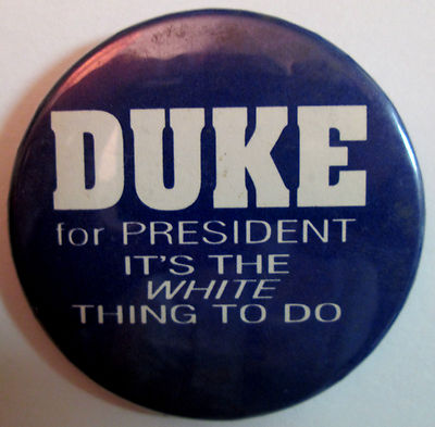 Title (ebay affiliate link): authentic DAVID DUKE for president Button-KU KLUX KLAN-AMERICAN NAZI PARTY