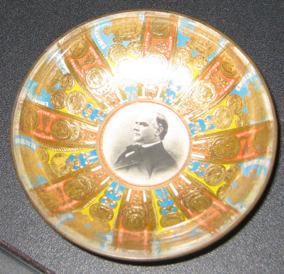 VINTAGE WILLIAM McKINLEY GLASS CIGAR BAND ART PICTURE BOWL OR ASHTRAY