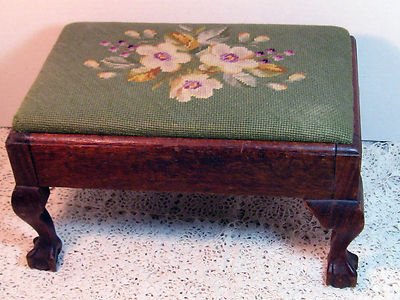 Title (ebay affiliate link): Antique Stool Ball & Claw Feet and a Needlepoint Cover