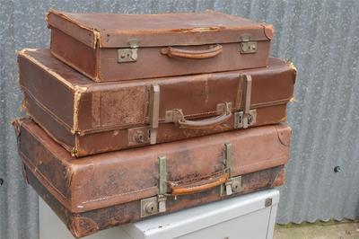 Vintage Leather Suitcases x3 Shabby Chic Storage Classic Car Luggage Prop Rustic