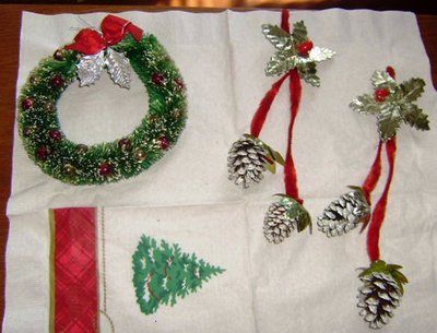 Title (ebay affiliate link): Lot of Vintage Christmas Wreaths Bottle Brush and Chenille With Foil Pine Cones