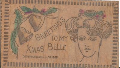 LEATHER POST CARD - CHRISTMAS 1907 - "Greetings to My Xmas Belle"