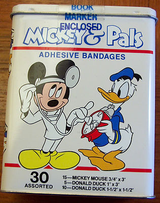 Title (ebay affiliate link): Mickey Mouse & Donald Duck Adhesive Bandages Tin with Seal & Contents