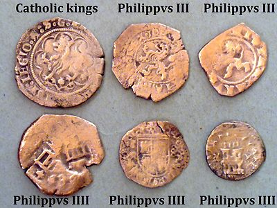 AWESOME!!! LOT OF 6 SPANISH PIRATE COINS. VERY INTERESTING LOT.