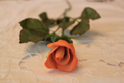 Title (ebay affiliate link): Capodimonte Porcelain 1 Peach Rose Bud Italian handmade Beautiful Lasts Forever