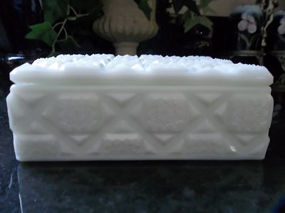 Title (ebay affiliate link): RARE Westmoreland Milk Glass OLD QUILT CIGARETTE Box Marked
