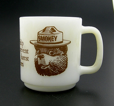 Title (ebay affiliate link): Vintage Smokey Bear Coffee Cup Mug Prevent Forest Fires Milk Glass