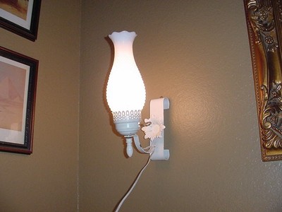 Title (ebay affiliate link): Antique Vtg Hobnail Milk Glass & Toleware Electric Wall Sconce Lamp