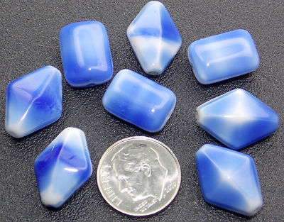 Vintage Czech German Sky Blue White Milk Glass Pressed Molded Beads