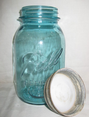 Title (ebay affiliate link): BLUE Ball Perfect Mason Quart Jar w/ Zinc Lid w/ Milk Glass Insert #13