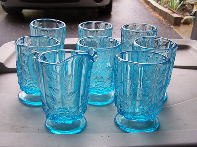 Title (ebay affiliate link): 7 Westmoreland Sapphire Blue Stemmed Tumblers/Glasses 1 Milk Pitcher