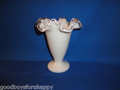 VTG Fenton Art Glass SILVER CREST Milk White Vase 6" high Double Crimped NICE