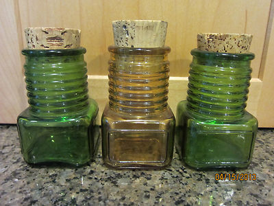 Vintage Wheaton Glass "Bolt Top" Cork Spice Jars Set of Three Bottle Depression