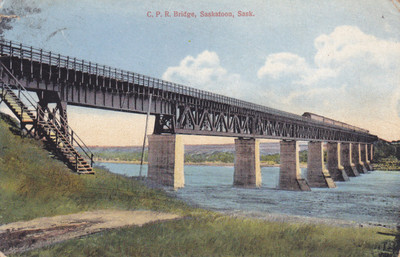 Title (ebay affiliate link): Postcard Canadian Pacific Railroad Bridge Saskatoon Sask Canada 1913 train