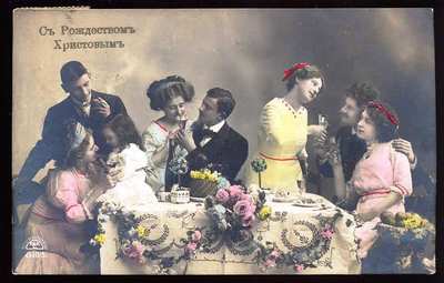 Title (ebay affiliate link): Russia Postcard Russian Feast Dinner Tinted Real Photo 1914 Postmark Greeting