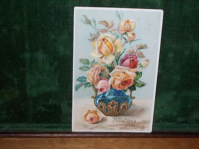 Title (ebay affiliate link): 1909 RAPHAEL TUCK "FLORAL MISSIVES-ROSES IN DECORATED VASE-AFFECTION'S OFFERING"