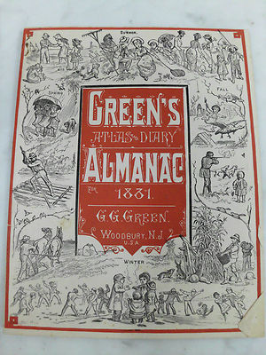 Title (ebay affiliate link): Vintage 1881 Green's Atlas Diary Almanac Woodbury NJ Farrow Williamsport MD Ad