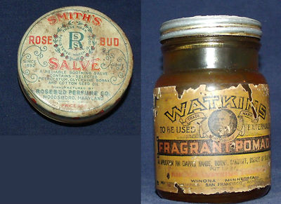 Title (ebay affiliate link): Lot of 2 Medical Salves 1914 Rose Bud and Glass Watkins Pomade Jar