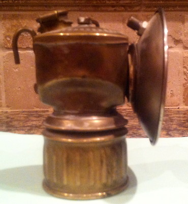 Title (ebay affiliate link): ANTIQUE JUSTRITE CARBIDE MINE LAMP MINERS LIGHT BRASS CAP LAMP