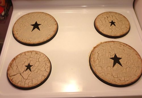 Title (ebay affiliate link): Primitive Burner Covers Stove Crackle Farm House Decor Not Wood