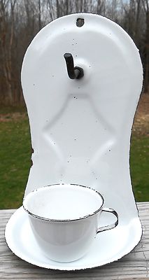 Title (ebay affiliate link): Enamelware White Bath Kitchen Cup Hook Shelf Country New England Estate Barn
