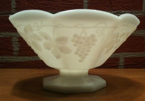 Title (ebay affiliate link): Vintage Anchor Hocking Compote - Milk Glass - Grape Pattern - Good Condition