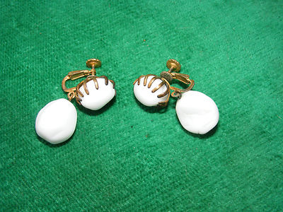 Title (ebay affiliate link): VINTAGE MIRIAM HASKELL CHUNKY MILK GLASS SCREW BACK EARRINGS
