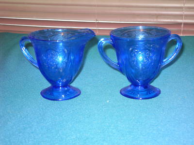 Title (ebay affiliate link): Depression Royal Lace coblat blue creamer and sugar