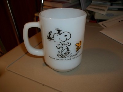 Snoopy Fire King Milkglass Coffee Mug Life Pure Joy