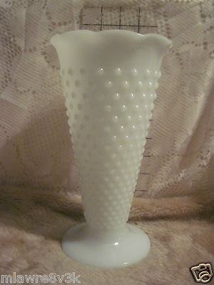 Title (ebay affiliate link): Vintage Anchor Hocking Milk Glass Hobnail and Bar Pattern Vase 9.5" Tall
