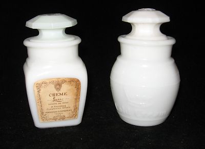Title (ebay affiliate link): Antique LUXOR Cold Cream Covered Milk Glass Jars x2 Paper Label CREME ARMOUR &CO