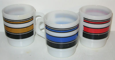 3 Fire King Stacking Milk Glass Mugs with Stripes