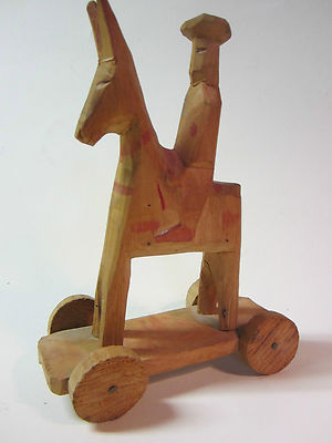 PRIMITIVE WOOD HORSEMAN ON WHEELS