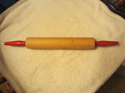 Title (ebay affiliate link): Antique Vintage Retro Slender Wood Rolling Pin Red Handles Kitchen Utensil