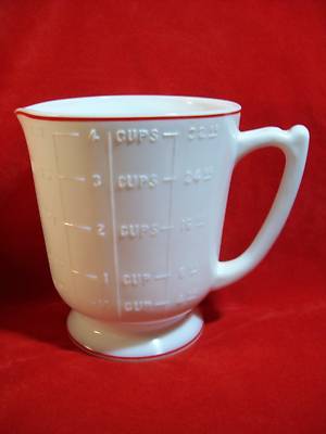 Vintage McKee Milk Glass Measuring Cup White with Red
