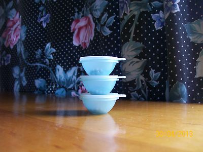 Title (ebay affiliate link): Tupperware Gadget Wondelier Pastel Blue Bowl Key Chains Lot of 3 Unused Vintage