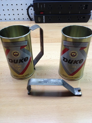 Title (ebay affiliate link): lot of 2 Duke Beer can mugs with HANDY Handles
