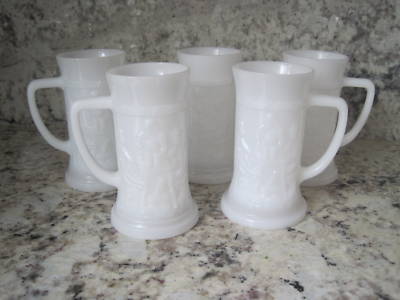 WHITE MILK GLASS MUG SET OF 5 BEER STEINS