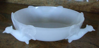 Rare Jeannette Footed Flying Pheasants Milk Glass Bowl