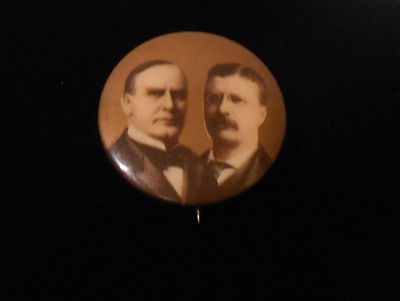 Title (ebay affiliate link): McKinley & Roosevelt Campaign Pin Gold Metallic Background 1 1/4" Diameter