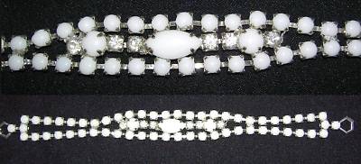 Vintage La-Rel Signed Milk Glass & Rhinestone Bracelet