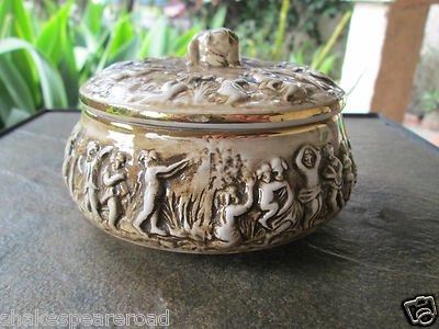 Vintage R. CAPODIMONTE M.A.S. Vanity Dish w Lid Cupids & Nymphs Italy