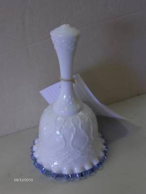 FENTON BELL / SPANISH LACE MILK GLASS BLUE CREST #3567