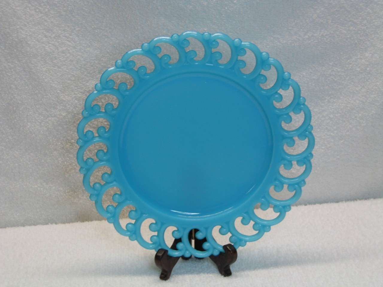 Dithridge Blue Opaline Milk Glass Plate Backward C Edge