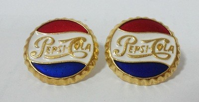 COLLECTIBLE FASHION VINTAGE PEPSI - COLA EARRINGS COLOR GOLD LADY GIRL FREE SHIP